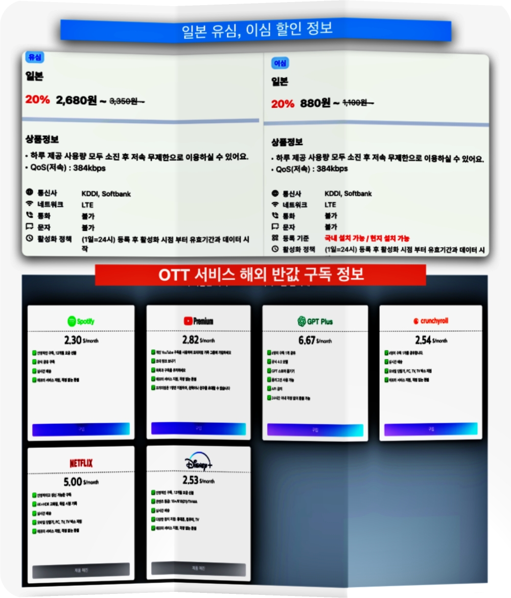 과거에는 공항에 도착해서 많이 구입하셨는데요, 특히 성수기 때는 줄 서고, 상품 설명 듣고 시간과 수고가 좀 들었습니다. 하지만 지금은 더 싸고, 편해, 한국에서 구매하고 오십니다. 저는 해외영업 출신이라, 20년 전부터, 해외 출장과 여행을 다녀서, 고정적으로 비교하는 업체 3군데가 있는데, 한 군데가 세일 프로모션을 해서 그곳의 가격을 알려드립니다. 쓰시던 곳과 같이 보시면 도움이 될 거 같네요. 저는 2024년 7월부터 유튜브 프리미엄 서비스를 해외 구독으로 반값으로 하고 있는데, 지금까지 잘 쓰고 있어 그것에 관련한 정보 함께 정리해서 알려드려요.