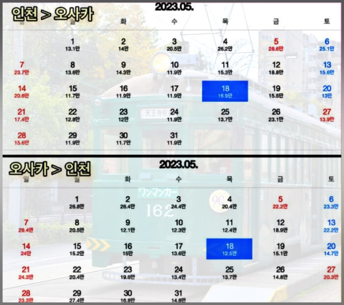 오사카 5월 항공권 가격