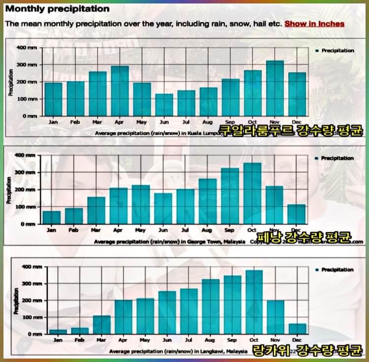 쿠알라룸푸르, 랑카위, 페낭 6월 건기, 우기 비