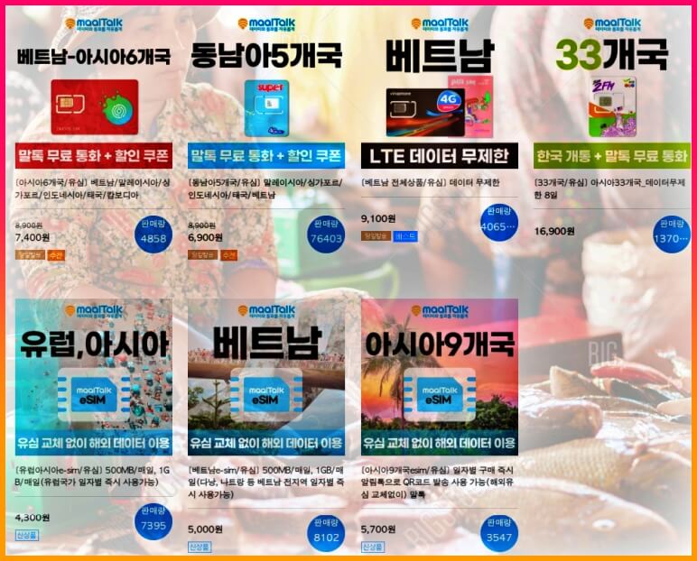 베트남, 동남 아시아 지역 심카드, esim 가격 할인 사이트 정보, 이sim 상세 정보