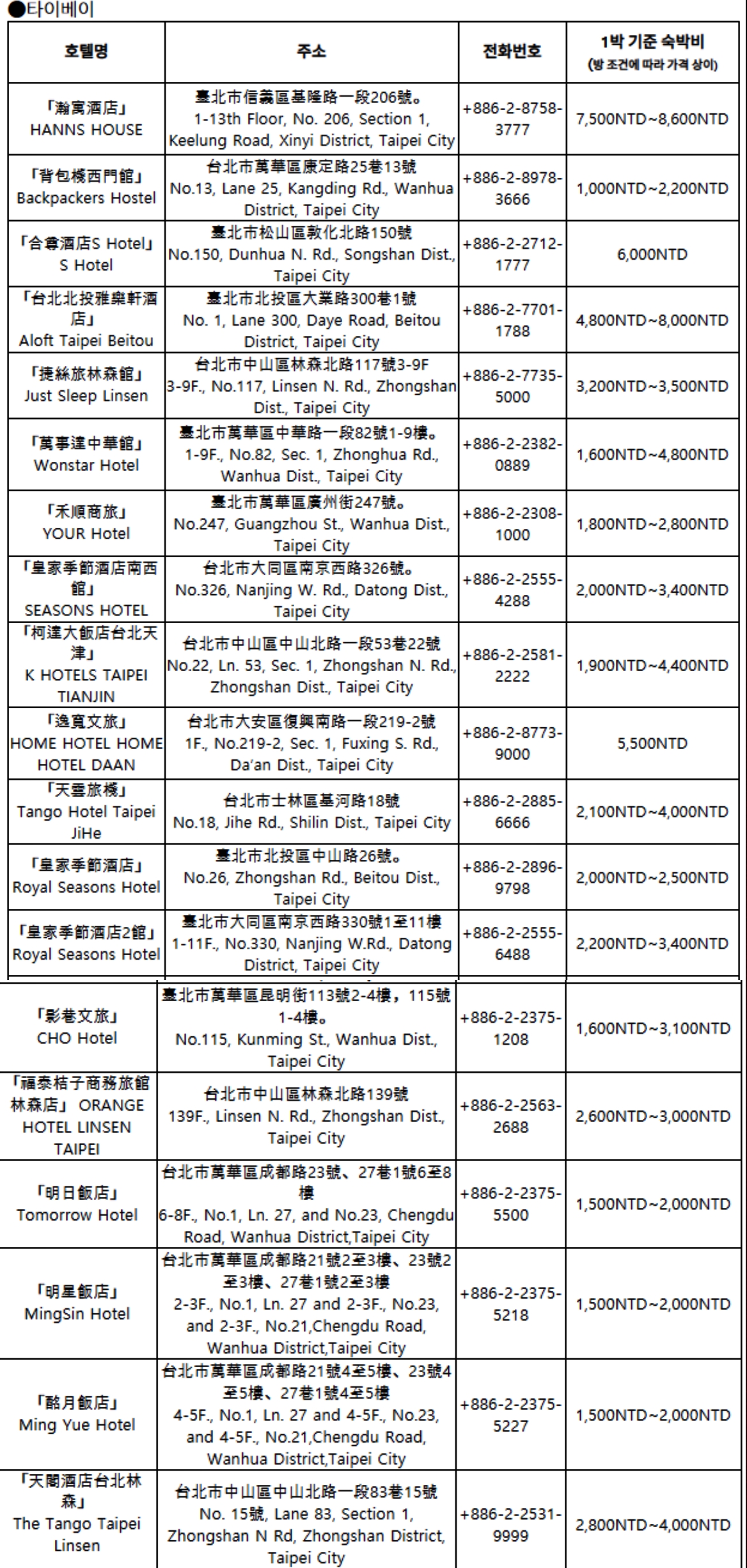 내용 입니다. 출처는 주 한국 대만 대사관 입니다.