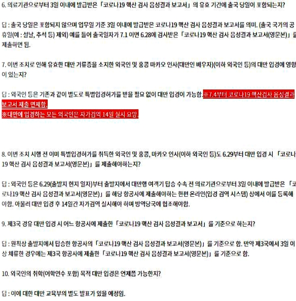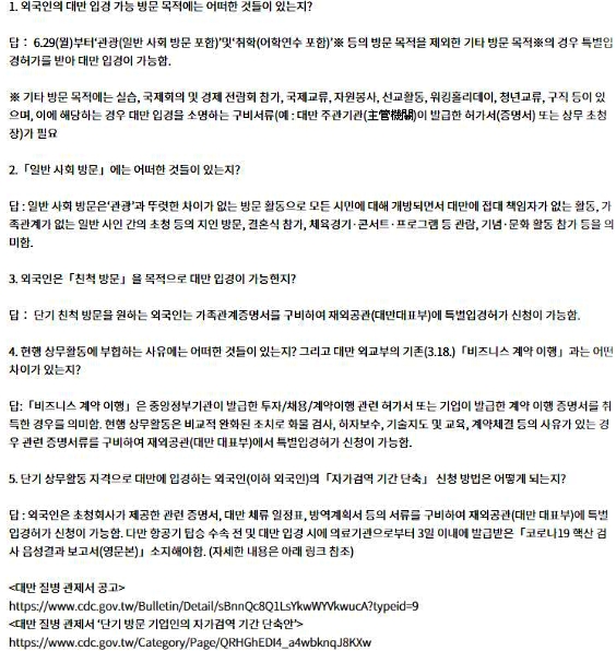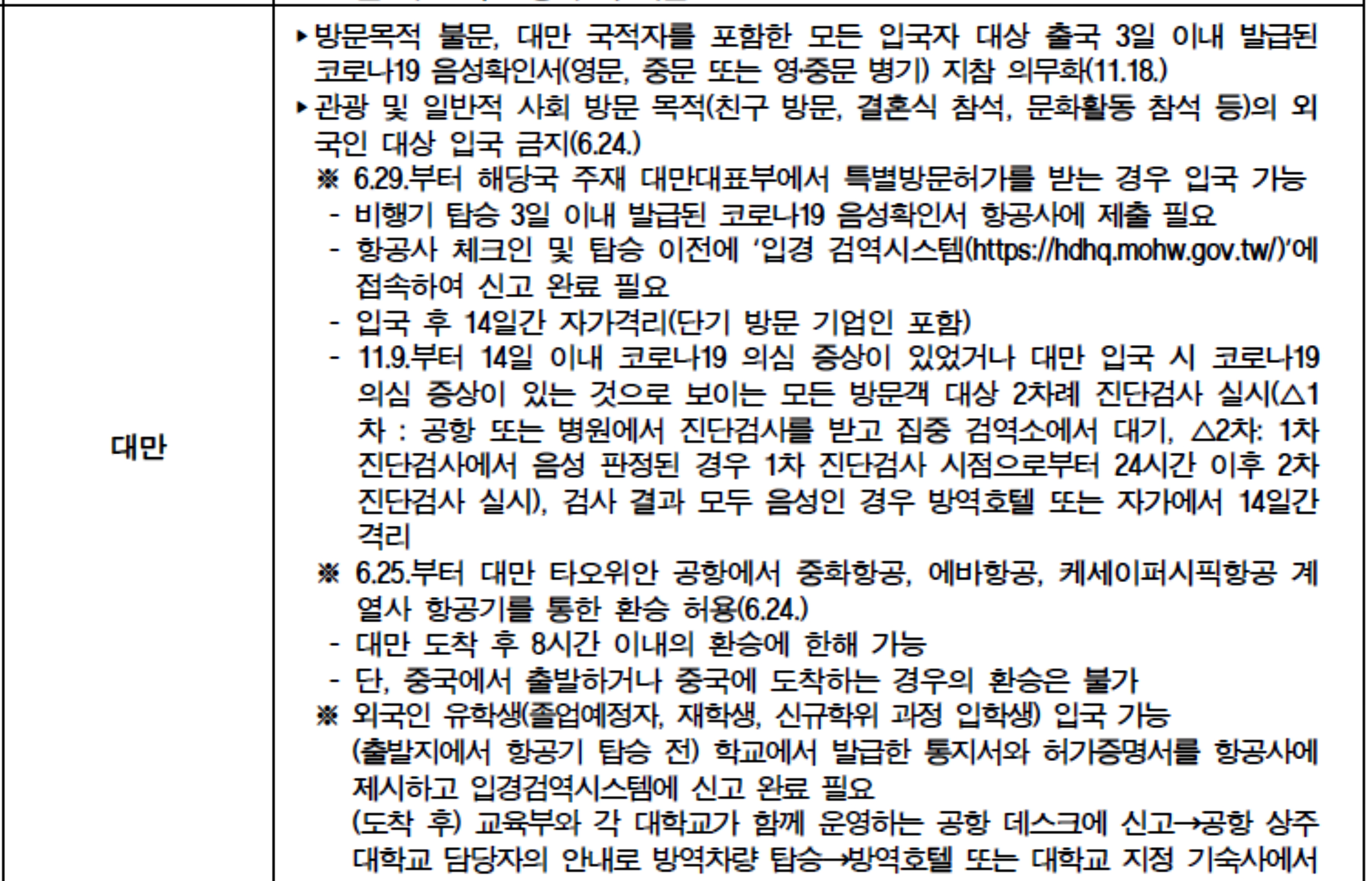 대만 입국관련 정보 입니다. 최근 공지 내용은