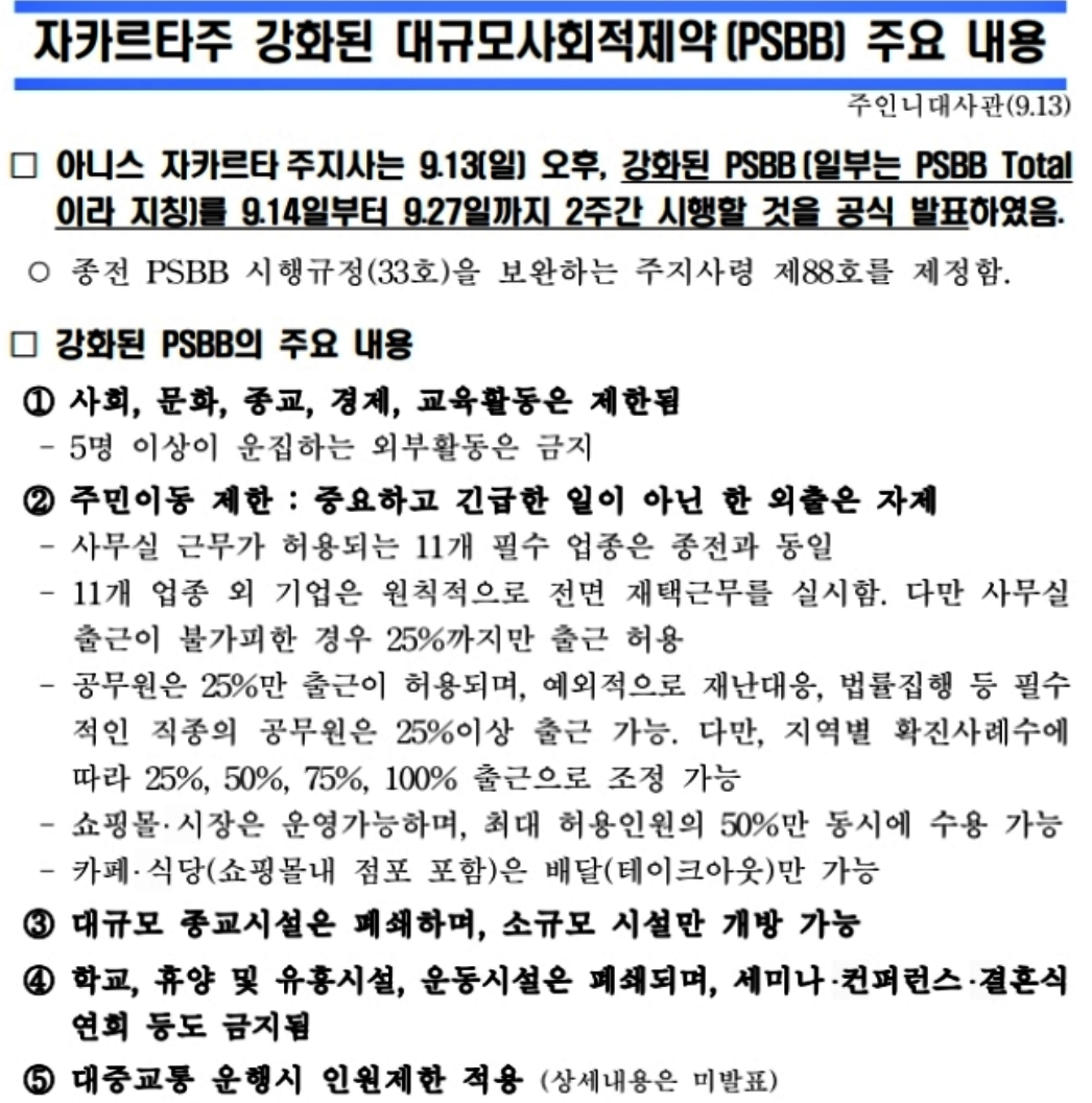 방역 수칙 입니다. PSBB는 상황이 엄중해 지면
