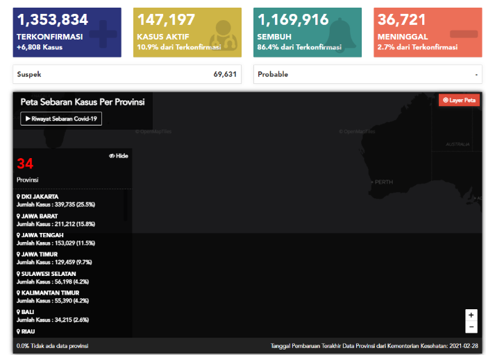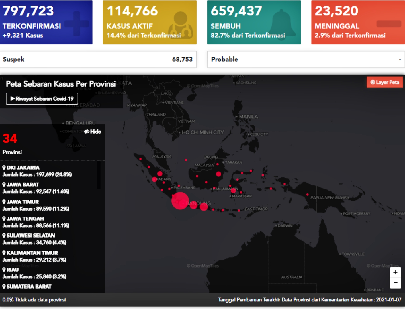 확인한 인도네시아 방역 당국 공지란의 확진자 수 입니다. 현재 누적 양성자