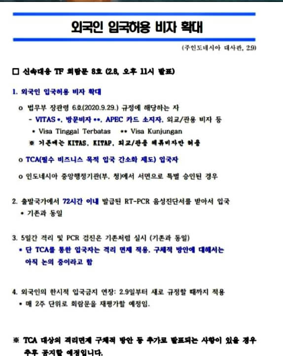 실시 중이오니, 인도네시아 대사관에 상세 내용이 있으니