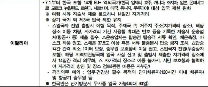 따라서 한국에서 이탈리아로 입국하는 여행객은