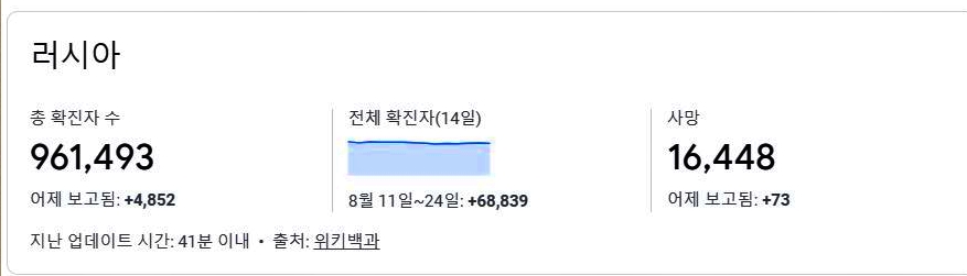 러시아의 코로나 바이러스 최근 상황