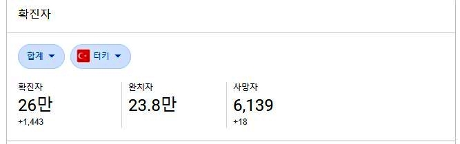 아래는 터키 코로나 일일 통계 입니다.