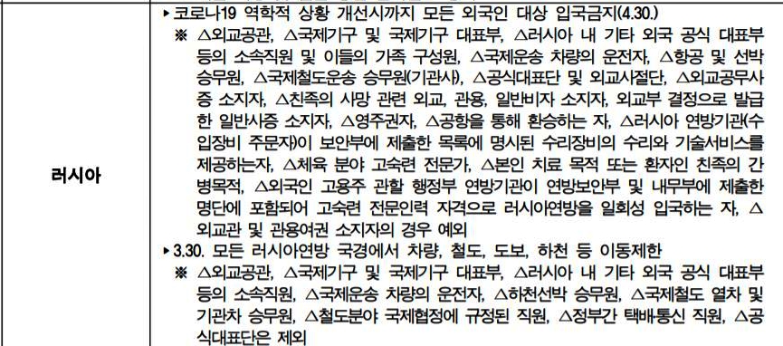 러시아 정부는 코로나19로 인한 모든 외국인