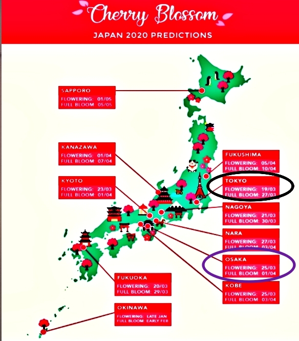 오사카 벚꽃 개화는 보통 3월 말 부터하며